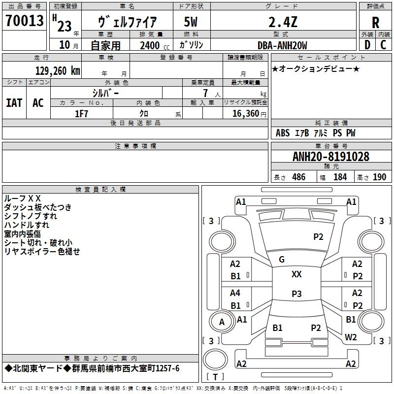 TOYOTA VELLFIRE 2011 г., лот № 70013