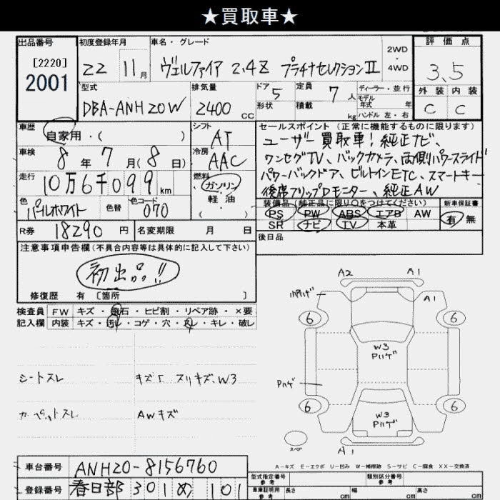 TOYOTA VELLFIRE 2010 г., лот № 2001
