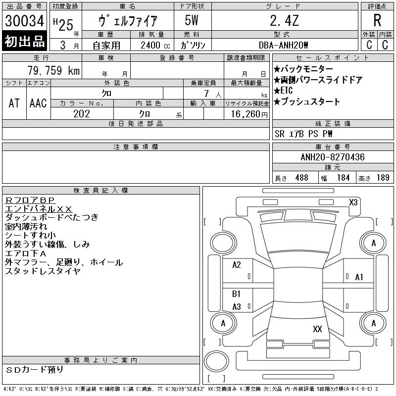 TOYOTA VELLFIRE 2013 г., лот № 30034