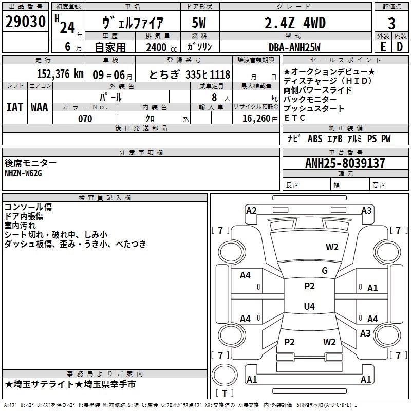TOYOTA VELLFIRE 2012 г., лот № 29030