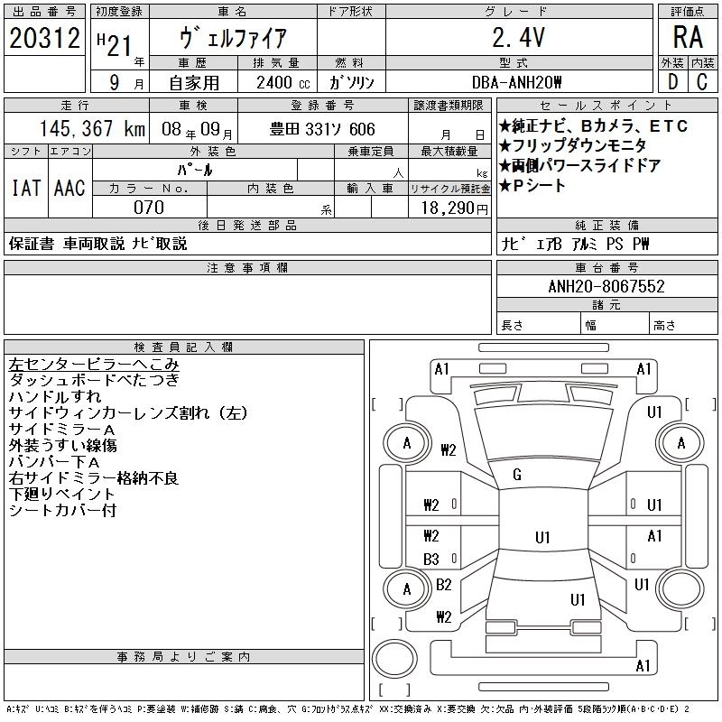 TOYOTA VELLFIRE 2009 г., лот № 20312