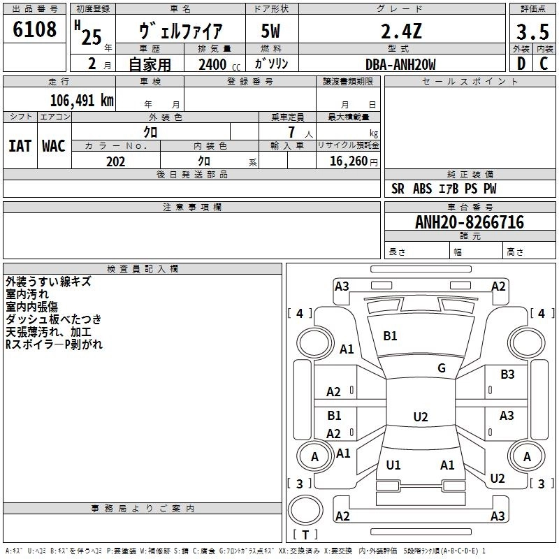 TOYOTA VELLFIRE 2013 г., лот № 6108