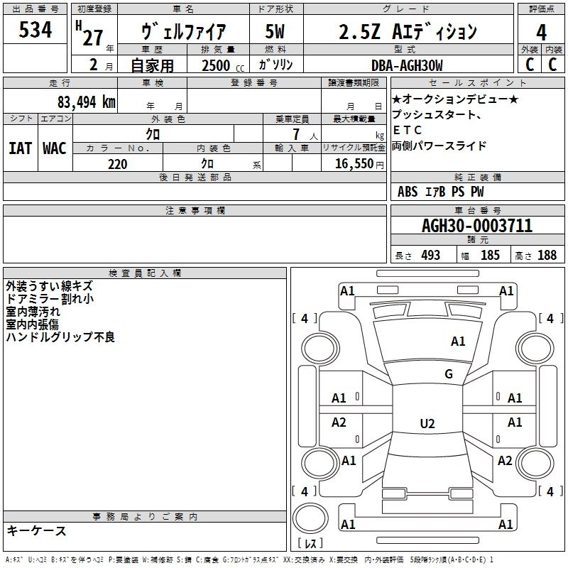 TOYOTA VELLFIRE 2015 г., лот № 534