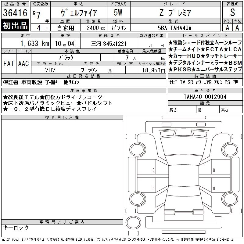 Статус выставлен на аукцион Лот 36416 Аукцион CAA Chubu Дата аукциона 11.03.2026