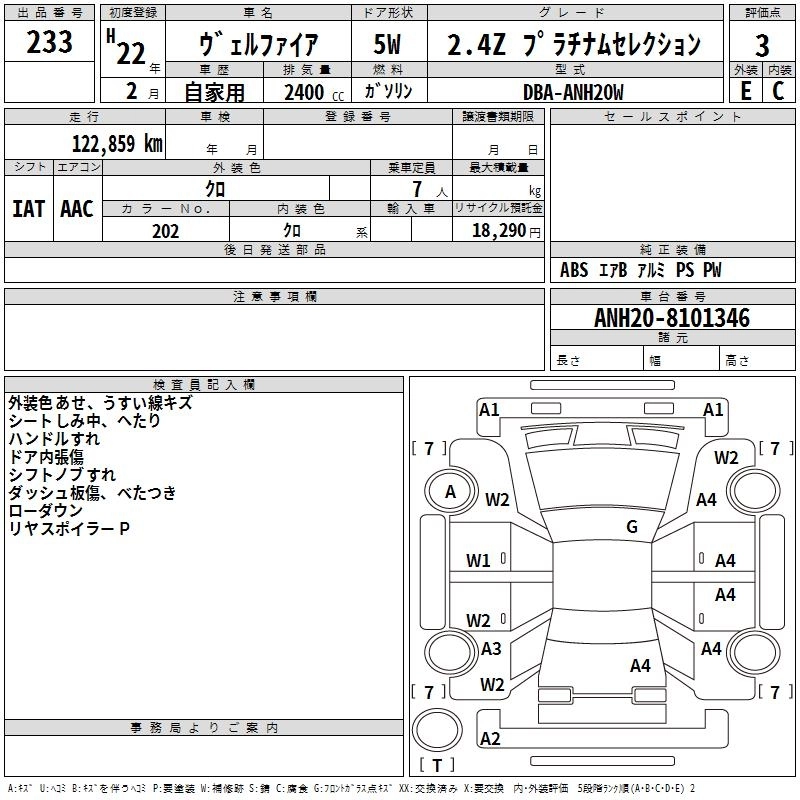 TOYOTA VELLFIRE 2010 г., лот № 233