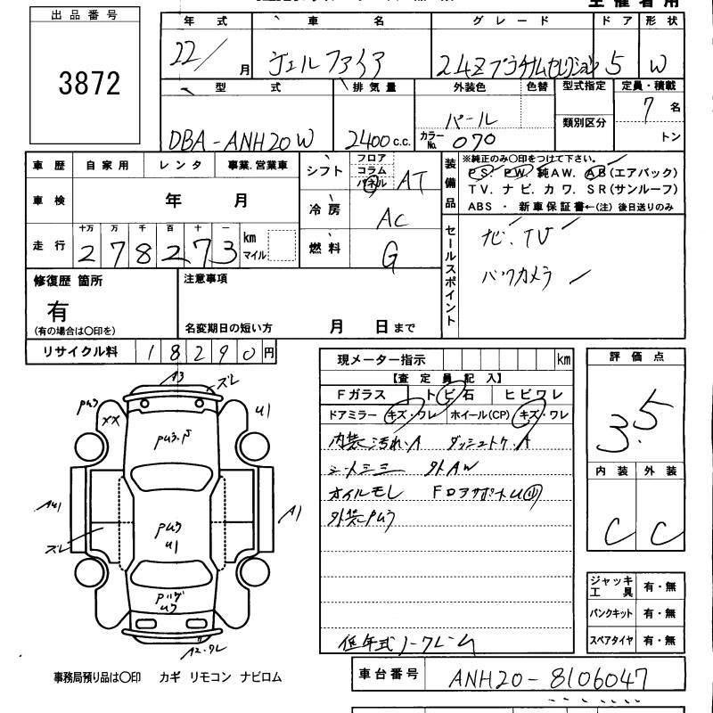Год выпуска2010 Пробег 278 000 км КузовANH20W Комплектация2.4Z PLATINUM SELECTION