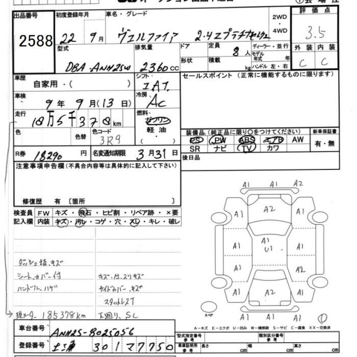 Год выпуска2010 Пробег 185 000 км КузовANH25W Комплектация2.4Z PLATINUM SELECTION II