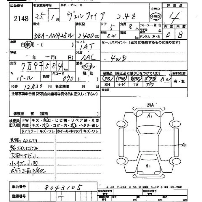 TOYOTA VELLFIRE 2013 г., лот № 2148