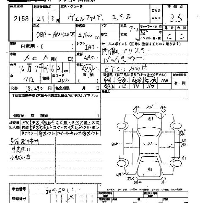 TOYOTA VELLFIRE 2009 г., лот № 2158