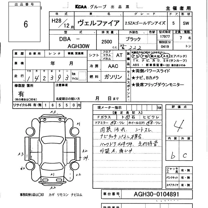 TOYOTA VELLFIRE 2016 г., лот № 6