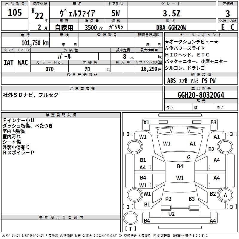 TOYOTA VELLFIRE 2010 г., лот № 105