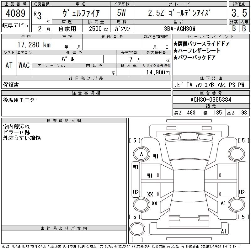 TOYOTA VELLFIRE 2021 г., лот № 4089
