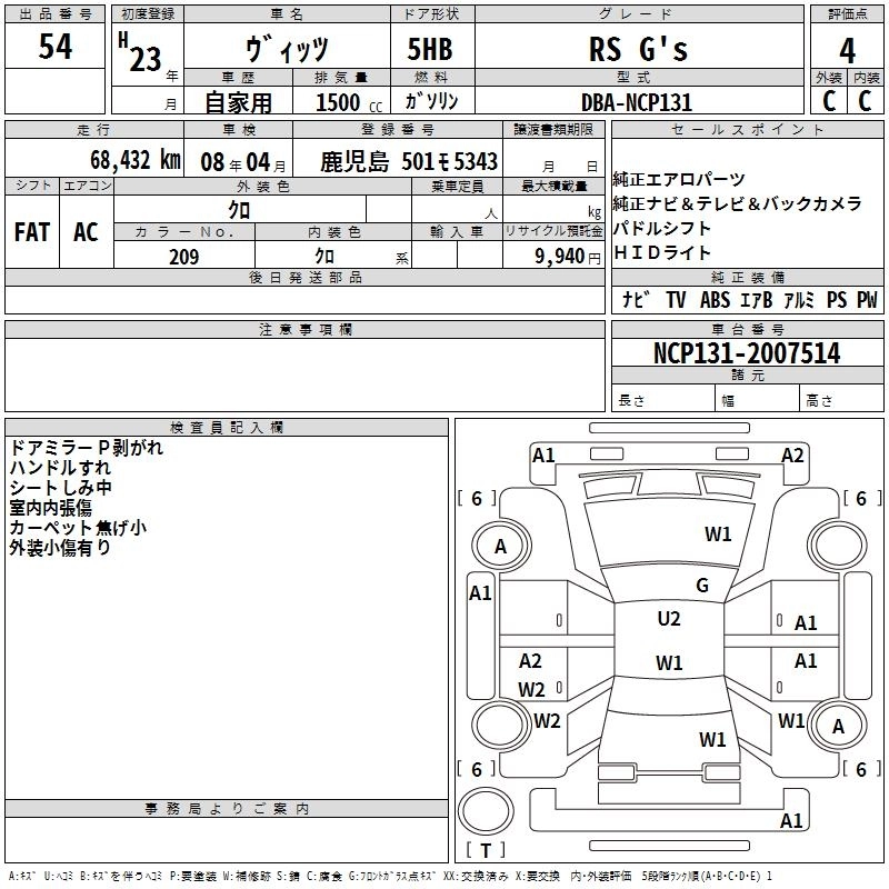 TOYOTA VITZ 2011 г., лот № 54