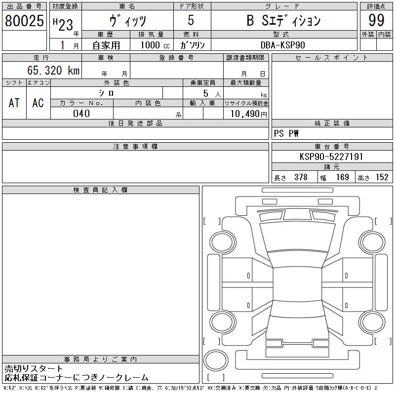 TOYOTA VITZ 2011 г., лот № 80025
