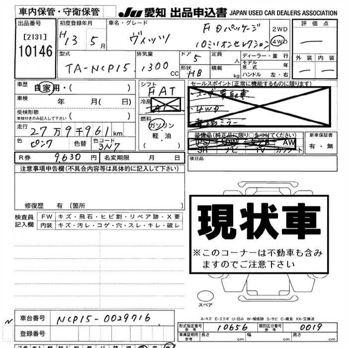 Год выпуска2001 Пробег 280 000 км КузовNCP15 КомплектацияF D-PKG 10 MILLION SELECTION 4WD