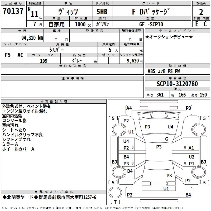 Год выпуска1999 Пробег 94 000 км КузовSCP10 КомплектацияF D PACKAGE
