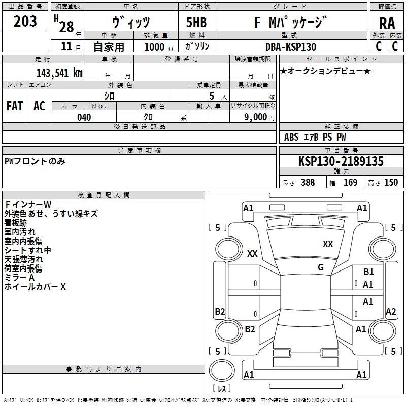 TOYOTA VITZ 2016 г., лот № 203