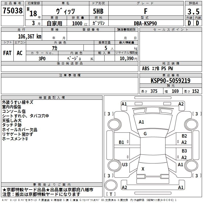 TOYOTA VITZ 2006 г., лот № 75038