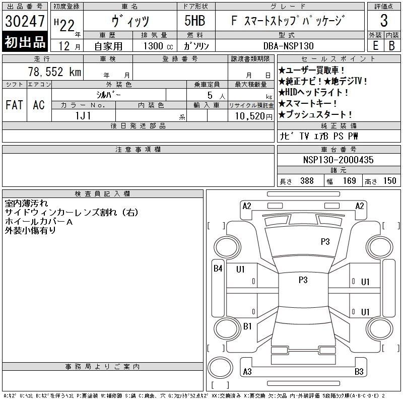 Год выпуска2010 Пробег 79 000 км КузовNSP130 КомплектацияF SMART S TOP PACKAGE