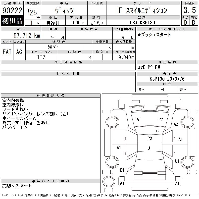Год выпуска2013 Пробег 58 000 км КузовKSP130 КомплектацияFS MILE EDITION