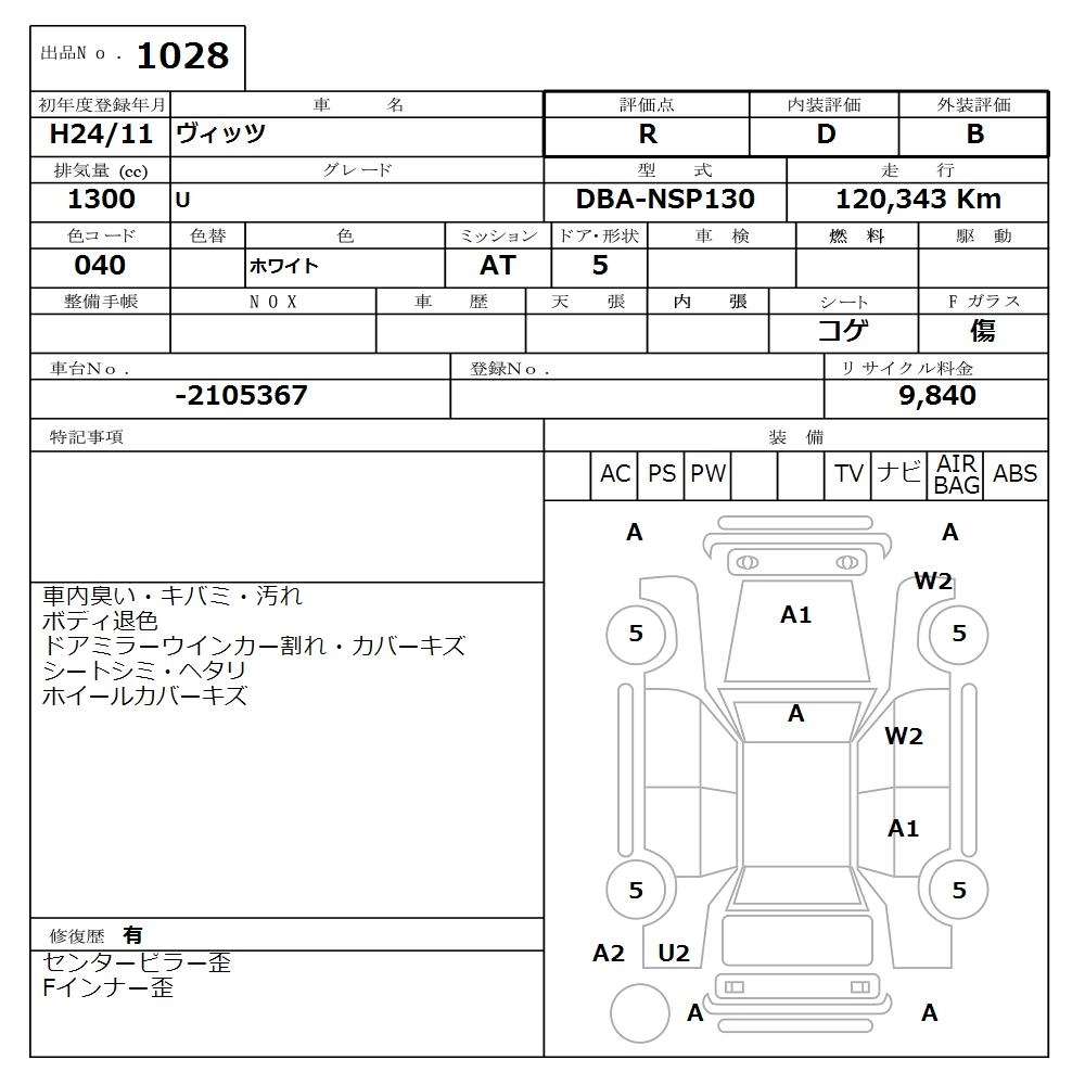 Год выпуска2012 Пробег 120 000 км КузовNSP130 КомплектацияU