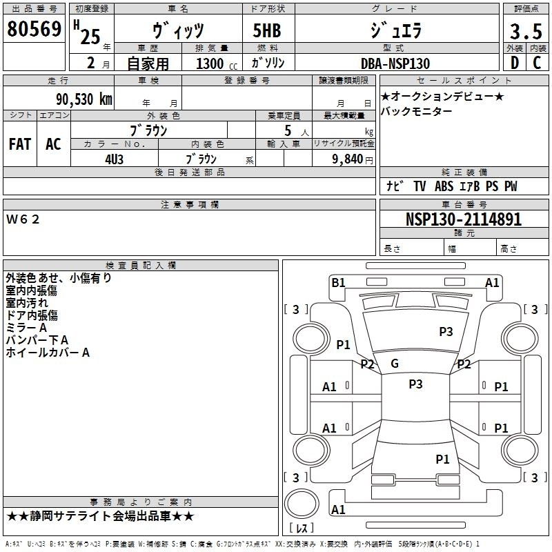 TOYOTA VITZ 2013 г., лот № 80569
