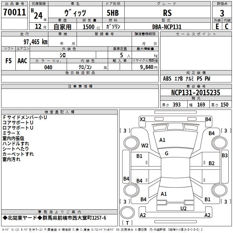 TOYOTA VITZ 2012 г., лот № 70011