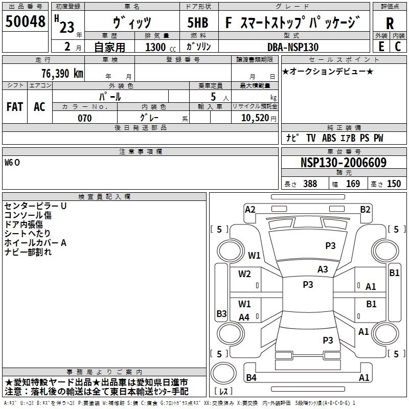 TOYOTA VITZ 2011 г., лот № 50048