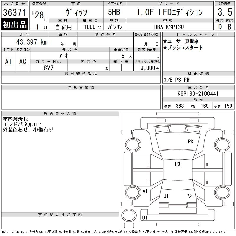 TOYOTA VITZ 2016 г., лот № 36371