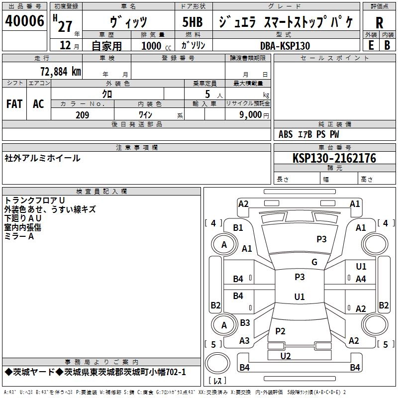TOYOTA VITZ 2015 г., лот № 40006