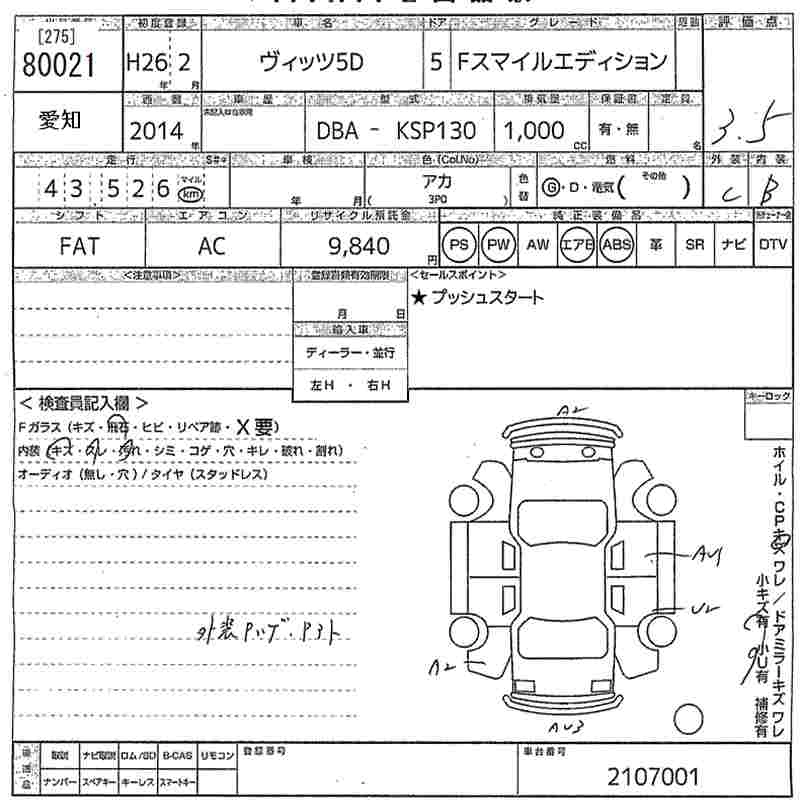 TOYOTA VITZ 2014 г., лот № 80021