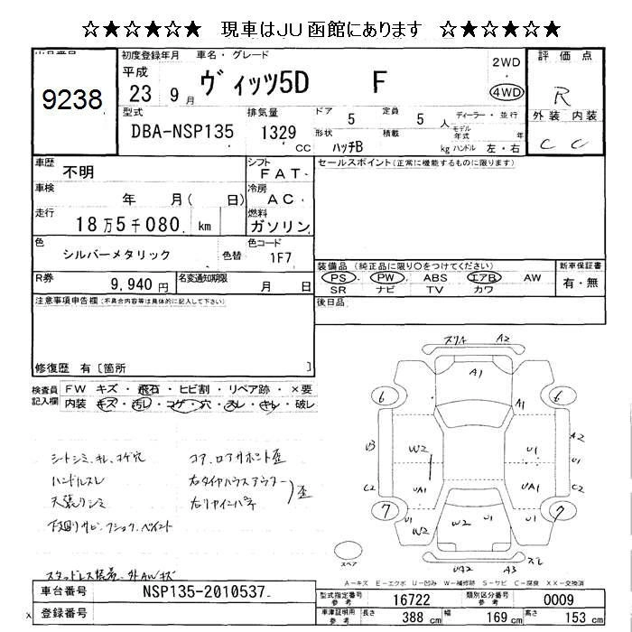 TOYOTA VITZ 2011 г., лот № 9238