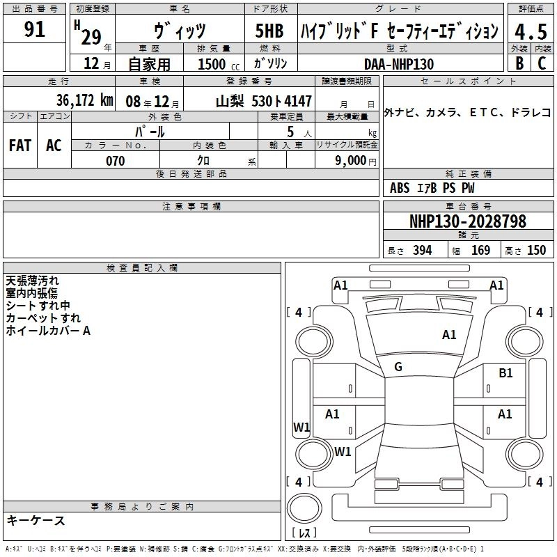 TOYOTA VITZ 2017 г., лот № 91