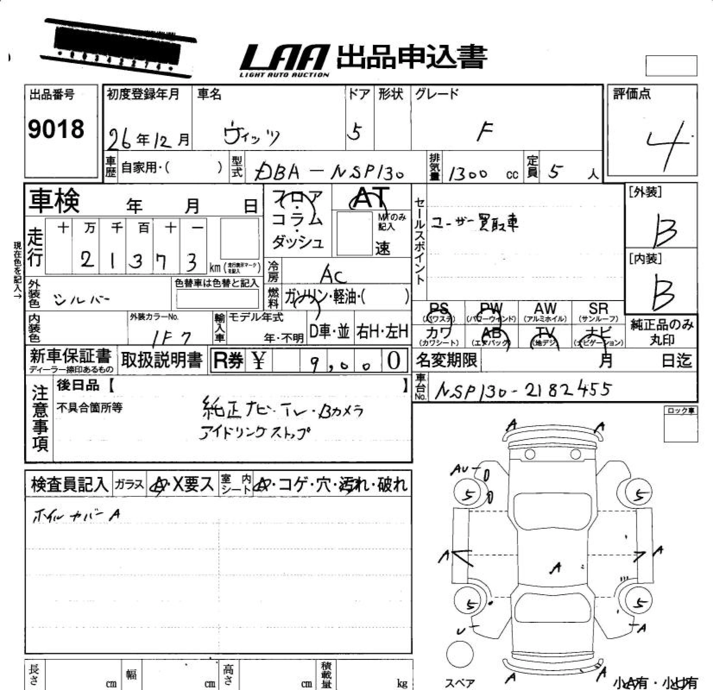 TOYOTA VITZ 2014 г., лот № 9018