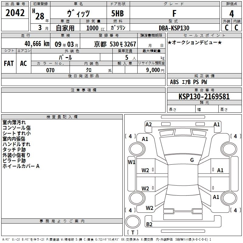 TOYOTA VITZ 2016 г., лот № 2042