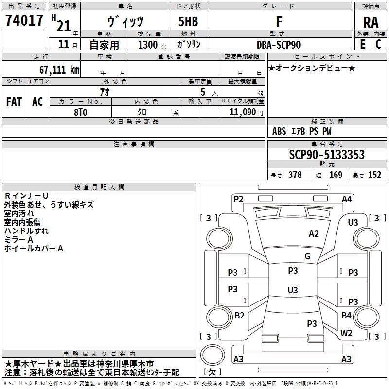 TOYOTA VITZ 2009 г., лот № 74017