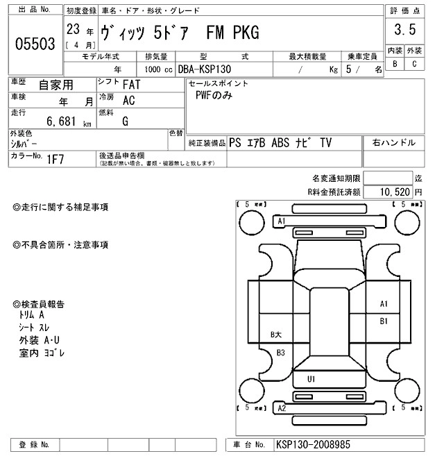 TOYOTA VITZ 2011 г., лот № 5503