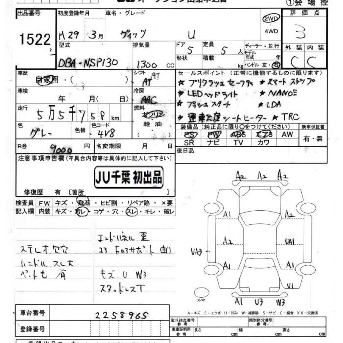 TOYOTA VITZ 2017 г., лот № 1522