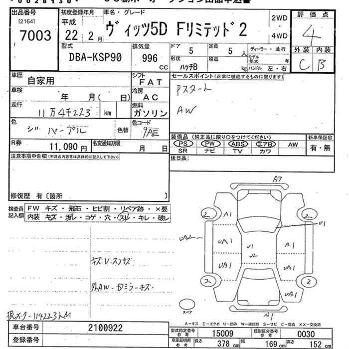 TOYOTA VITZ 2010 г., лот № 7003