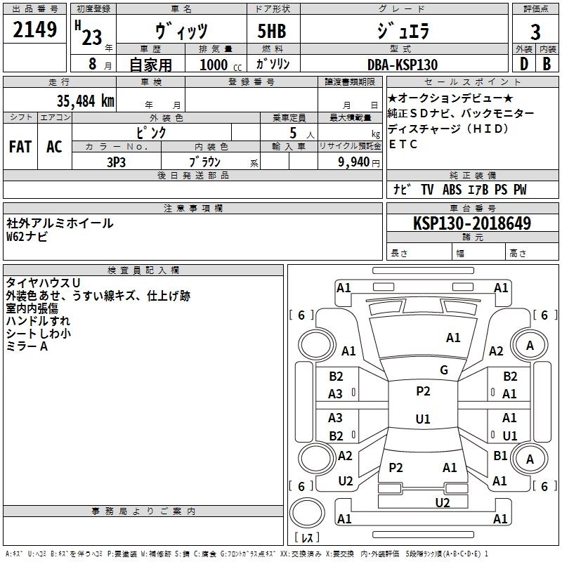 TOYOTA VITZ 2011 г., лот № 2149