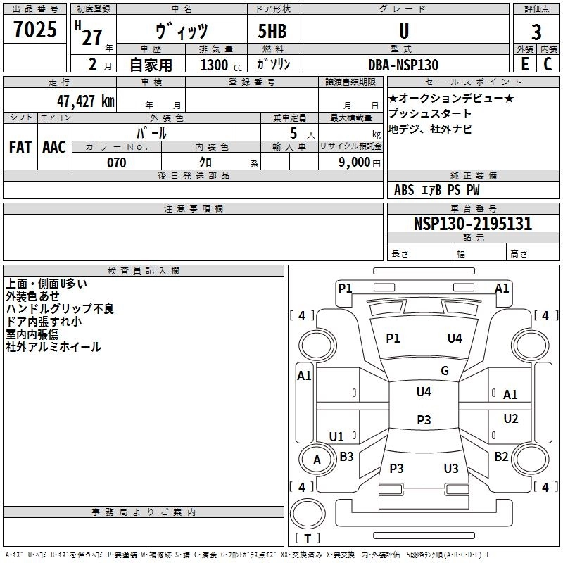 Год выпуска2015 Пробег 47 000 км КузовNSP130 КомплектацияU