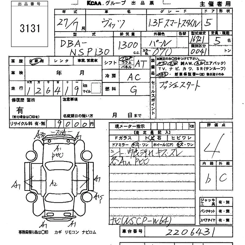 TOYOTA VITZ 2015 г., лот № 3131