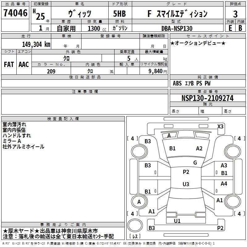 TOYOTA VITZ 2013 г., лот № 74046