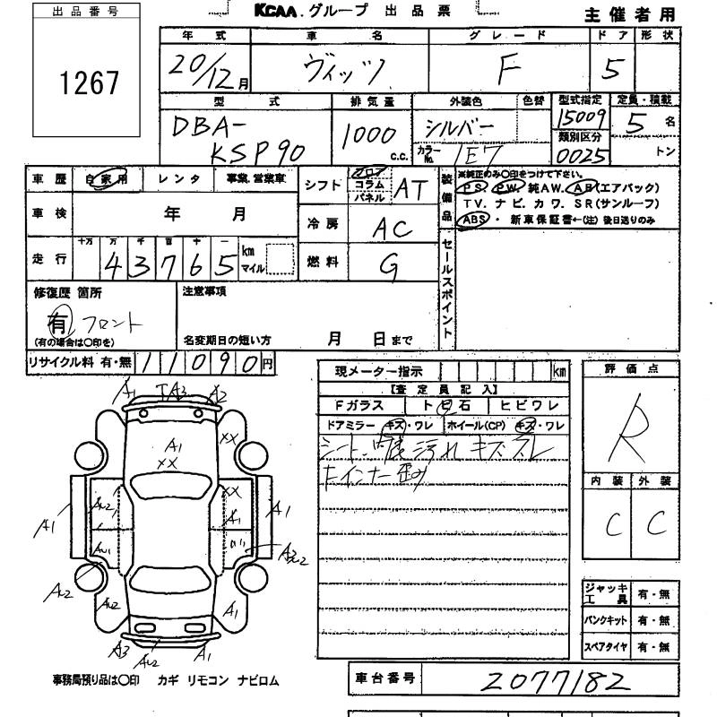 TOYOTA VITZ 2008 г., лот № 1267