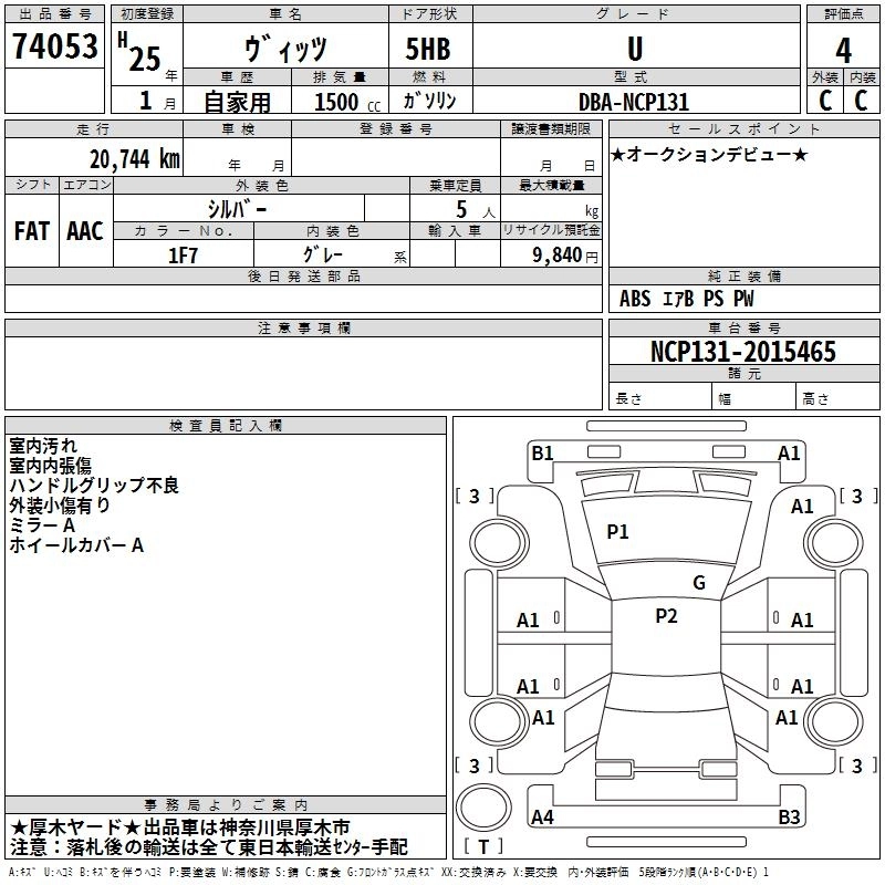 TOYOTA VITZ 2013 г., лот № 74053