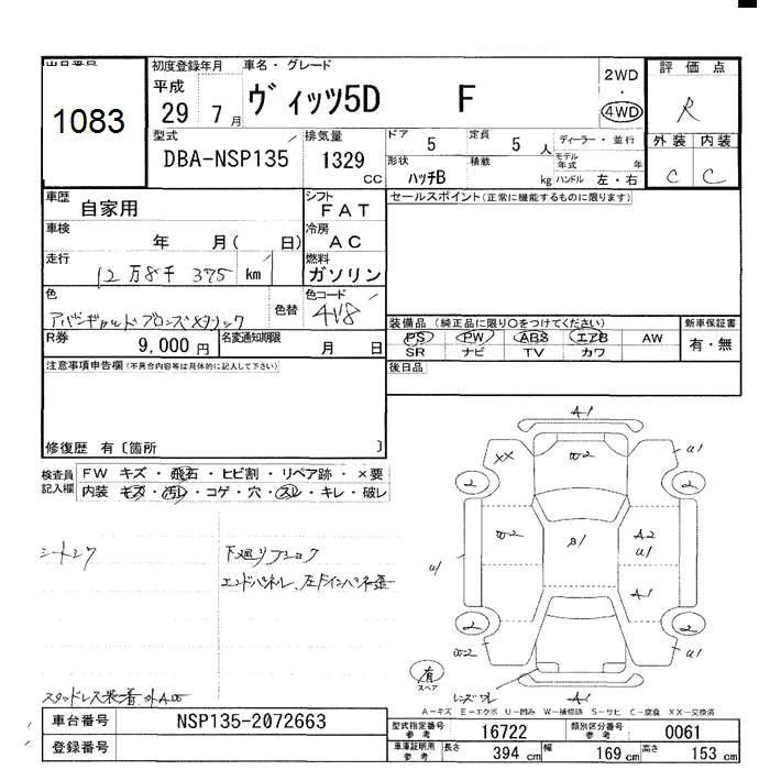 TOYOTA VITZ 2017 г., лот № 1083