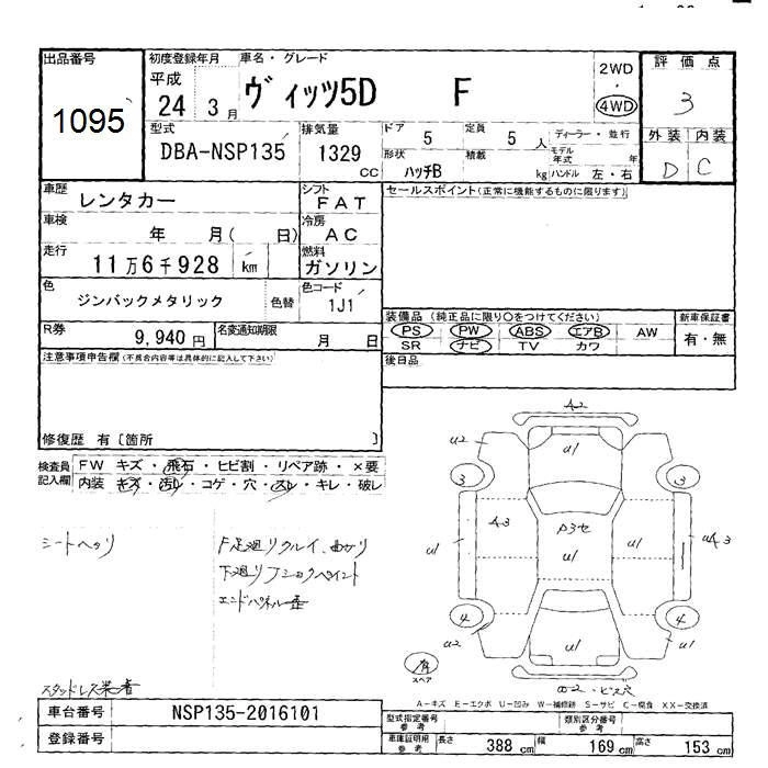 TOYOTA VITZ 2012 г., лот № 1095
