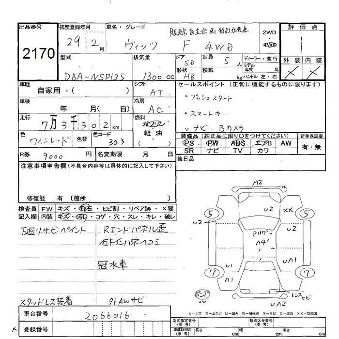 TOYOTA VITZ 2017 г., лот № 2170