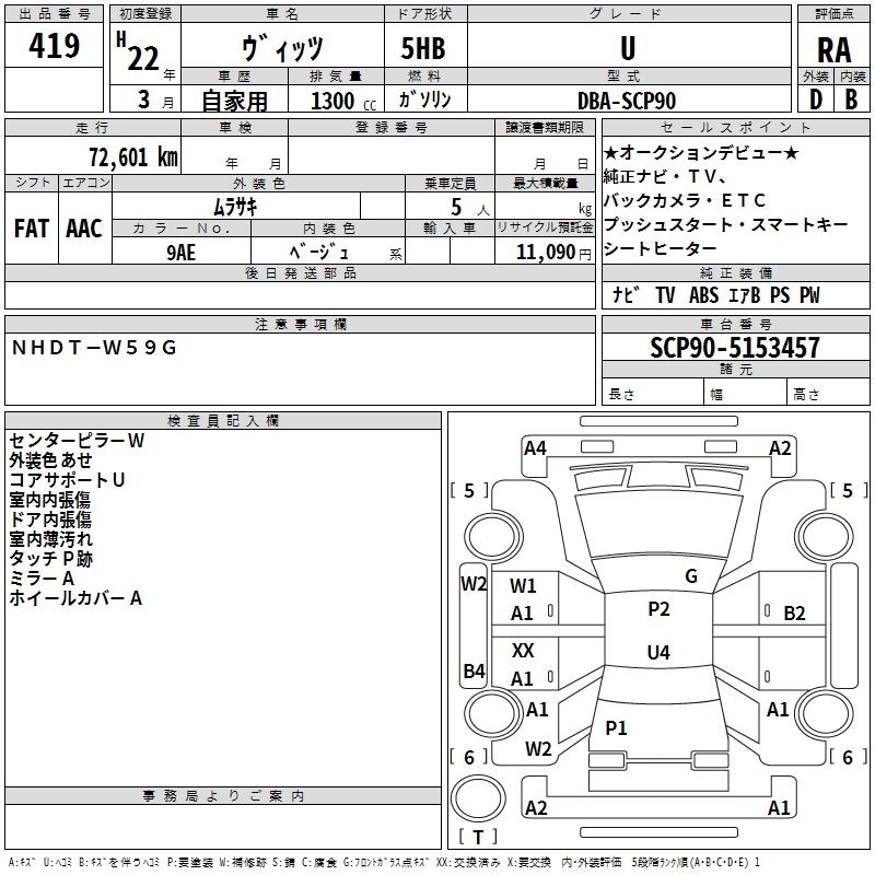 TOYOTA VITZ 2010 г., лот № 419