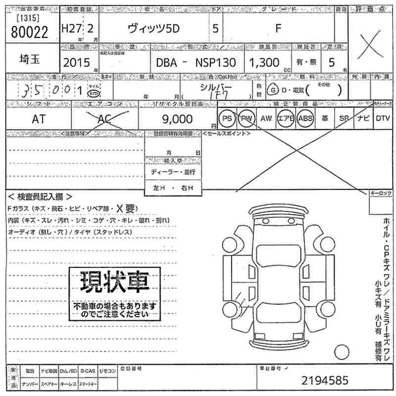 TOYOTA VITZ 2015 г., лот № 80022
